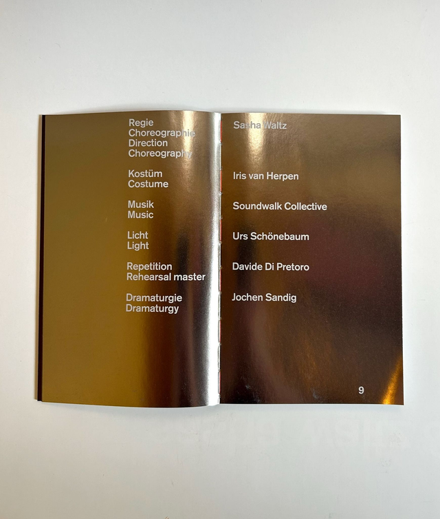 In »Kreatur« (2017), Sasha Waltz and 14 dancers explore the contrasting forces of power and powerlessness, dominance and weakness, community and isolation, illness and desire. Dance emerges from tensions between creatures sharing the same living space. Private and social challenges of our present day are reflected. The programme booklet contains photographic insights into the rehearsal process and a text by author Julia Franck.