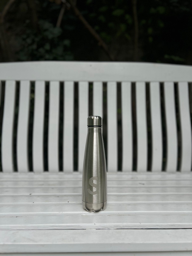 Jetzt könnt ihr uns überall mit hinnehmen: Unsere neue, stylische Edelstahl-Trinkflasche mit dezent eingraviertem Logo begleitet dich mit ins Meeting, zum Sport oder auf den Familienausflug – setze mit uns ein Zeichen für Nachhaltigkeit!